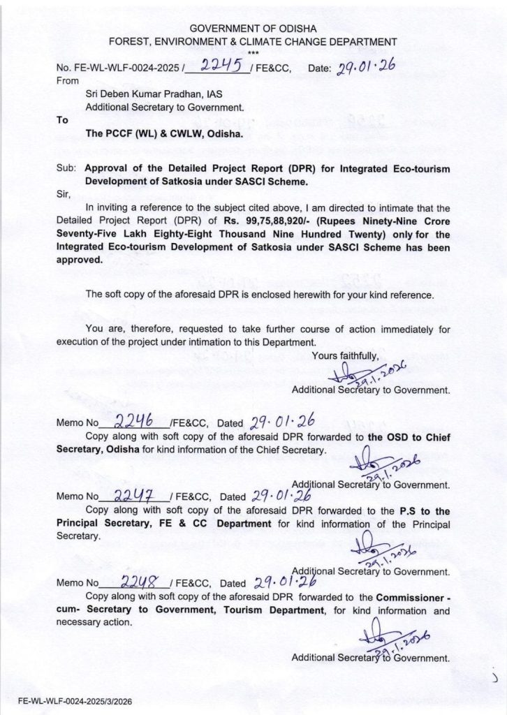 ଭୁବନେଶ୍ୱର: ସାତକୋଶିଆ ଅଭୟାରଣ୍ୟରେ ହେବ ବିଶ୍ୱସ୍ତରୀୟ ଇକୋ ଟୁରିଜିମ୍ ହବ୍ I ପ୍ରାୟ ୧୦୦ କୋଟି ଟଙ୍କା ବ୍ୟୟରେ ତିଆରି ହେବ ଅତ୍ୟାଧୁନିକ ଭିତ୍ତିଭୂମି I ୯୯ କୋଟି ୭୫ ଲକ୍ଷର ସବିଶେଷ ପ୍ରକଳ୍ପ ରିପୋର୍ଟ – DPRକୁ ଅନୁମୋଦନ ମିଳିଛି I ପର୍ଯ୍ୟଟକଙ୍କୁ ଆକୃଷ୍ଟ କରିବାକୁ ବ୍ୟାଘ୍ର ଅଭୟାରଣ୍ୟର ୬ଟି ସ୍ଥାନ ଚିହ୍ନଟ କରାଯିବ I