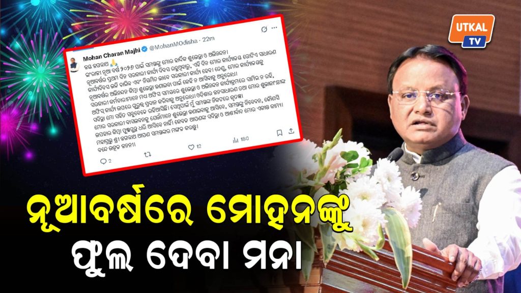 ନୂଆବର୍ଷର ପ୍ରଥମ ଦିନ ସରକାରୀ କାର୍ଯ୍ୟ ଦିବସ ରହୁଥିବାରୁ, ଏହି ଦିନ ମୋର କାର୍ଯ୍ୟାଳୟ ଗୋଟିଏ ସାଧାରଣ କାର୍ଯ୍ୟଦିବସ ଭଳି ଚାଲିବ ଏବଂ ନିୟମିତ ଭାବେ ସରକାରୀ କାର୍ଯ୍ୟ ହେବ। ତେଣୁ, ମୋର କାର୍ଯ୍ୟାଳୟକୁ ନୂଆବର୍ଷର ଅଭିନନ୍ଦନ କିମ୍ବା ଶୁଭେଚ୍ଛା ଜଣାଇବା ପାଇଁ କେହି ନ ଆସିବାକୁ ଅନୁରୋଧ। ସରକାରୀ କର୍ମଚାରୀମାନେ ମଧ୍ୟ ଅଫିସ ସମୟରେ ଶୁଭେଚ୍ଛା ଓ ଅଭିନନ୍ଦନ କାର୍ଯ୍ୟକ୍ରମରେ ସାମିଲ ନ ରହି, ଅଫିସ୍ କାର୍ଯ୍ୟ ଉପରେ ଗୁରୁତ୍ୱ ପ୍ରଦାନ କରିବାକୁ ଅନୁରୋଧ। ଓଡ଼ିଶାର ଜନସାଧାରଣ ତଥା ମୋର ଶୁଭାକାଂକ୍ଷୀଙ୍କ ସଦିଚ୍ଛା ମୋ ସହିତ ସବୁବେଳେ ରହିଆସିଛି। ସେଥିପାଇଁ ମୁଁ ସମସ୍ତଙ୍କ ନିକଟରେ କୃତଜ୍ଞ। ମୋର ସରକାରୀ ବାସଭବନକୁ ଯେଉଁମାନେ ଶୁଭେଚ୍ଛା ଜଣାଇବାକୁ ଆସିବେ, ସମସ୍ତଙ୍କୁ ନିବେଦନ, କୌଣସି ଉପହାର କିମ୍ବା ପୁଷ୍ପଗୁଚ୍ଛ ଧରି ଆସିବେ ନାହିଁ। କେବଳ ଆପଣଙ୍କ ସଦିଚ୍ଛା ଓ ଆଶୀର୍ବାଦ ମୋର ଏକାନ୍ତ କାମ୍ୟ।