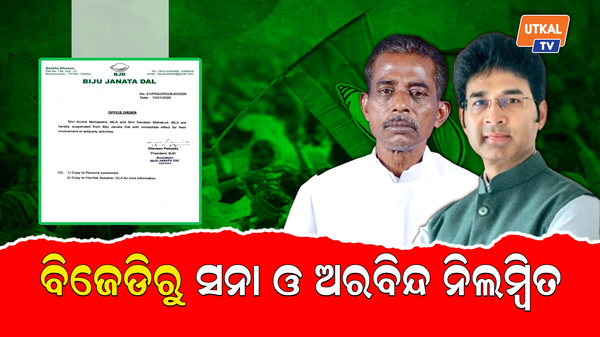 ବିଜେଡିରୁ ସନା ମହାକୁଡ ଓ ଅରବିନ୍ଦ ମହାପାତ୍ର ନିଲମ୍ବିତ